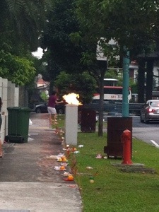 Since it’s still lunar 7th month, there are still people burning up a storm on the roads and this particular woman was setting fire to the air.